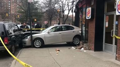 Imágenes muestras cómo la parte trasera del vehículo quedó empotrada en el ventanal del restaurante, ubicado en Metropolitan Oval, en Parkchester.